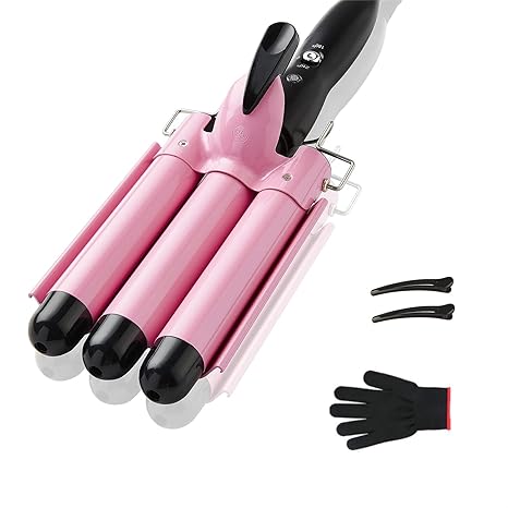 TOP4EVER 3 Barrel Curling Iron, 1 inch Crimper Hair Tool,Crimping Waver for Women Beach Waves with Two Temperature Settings, Pink